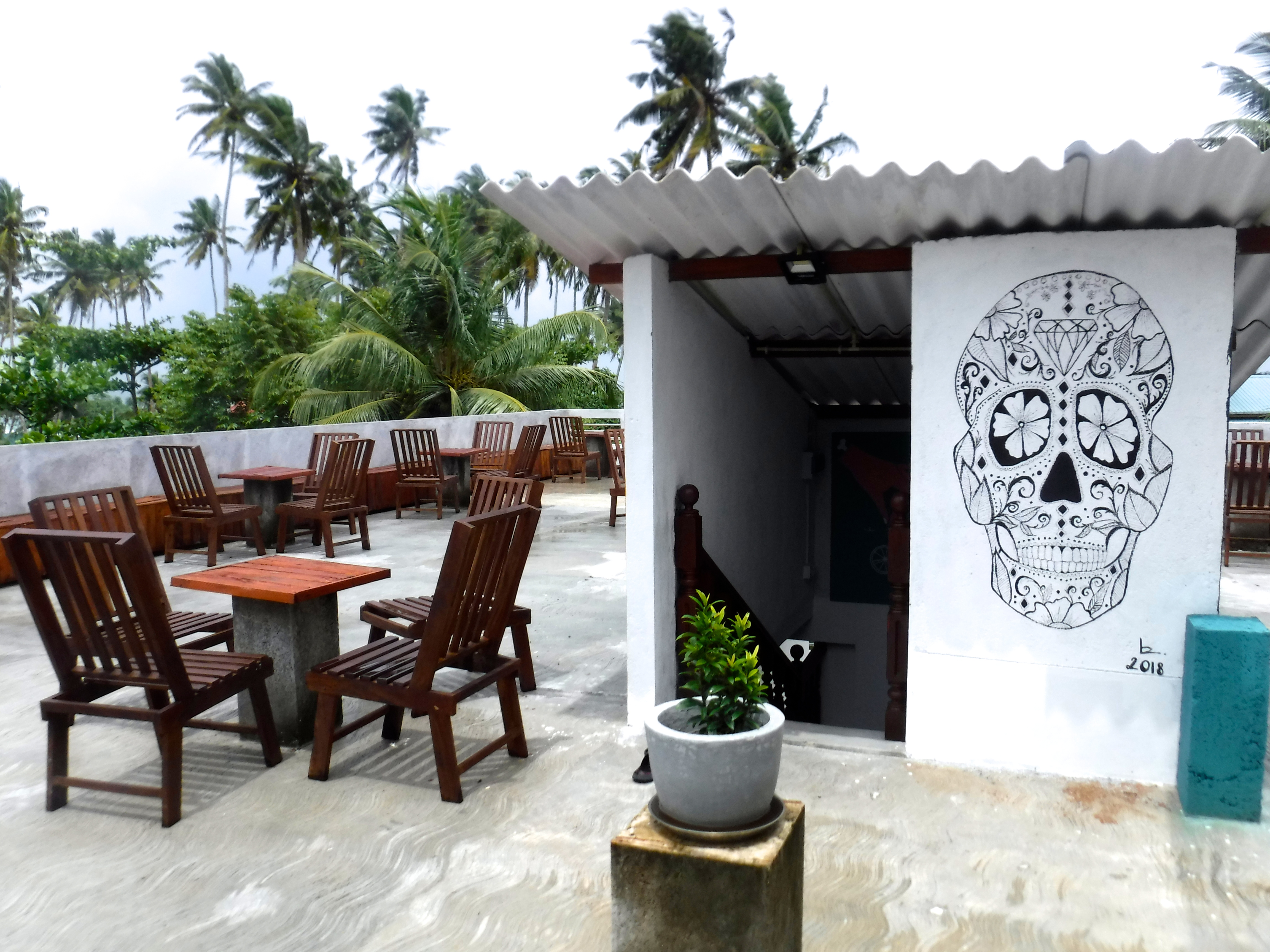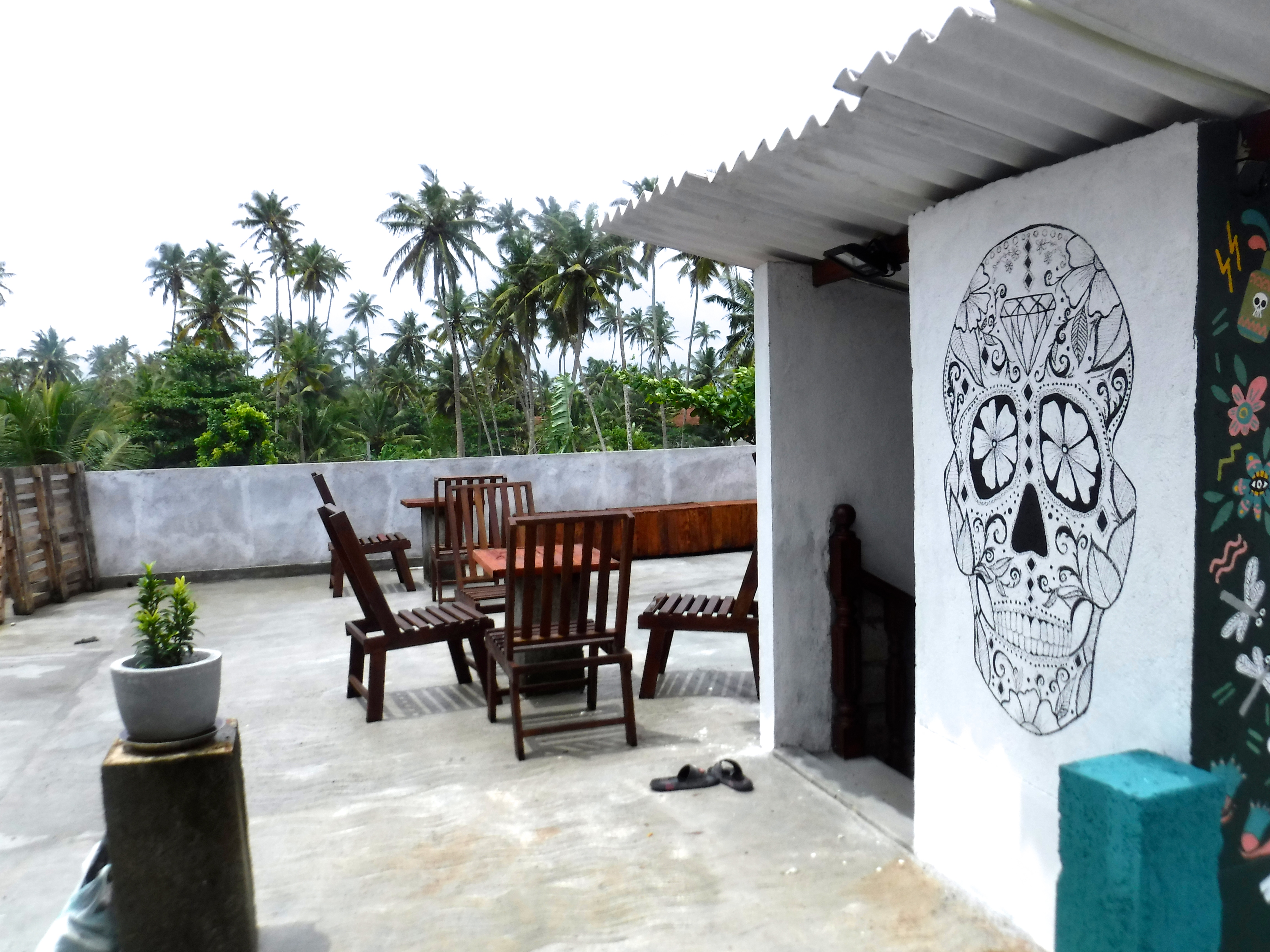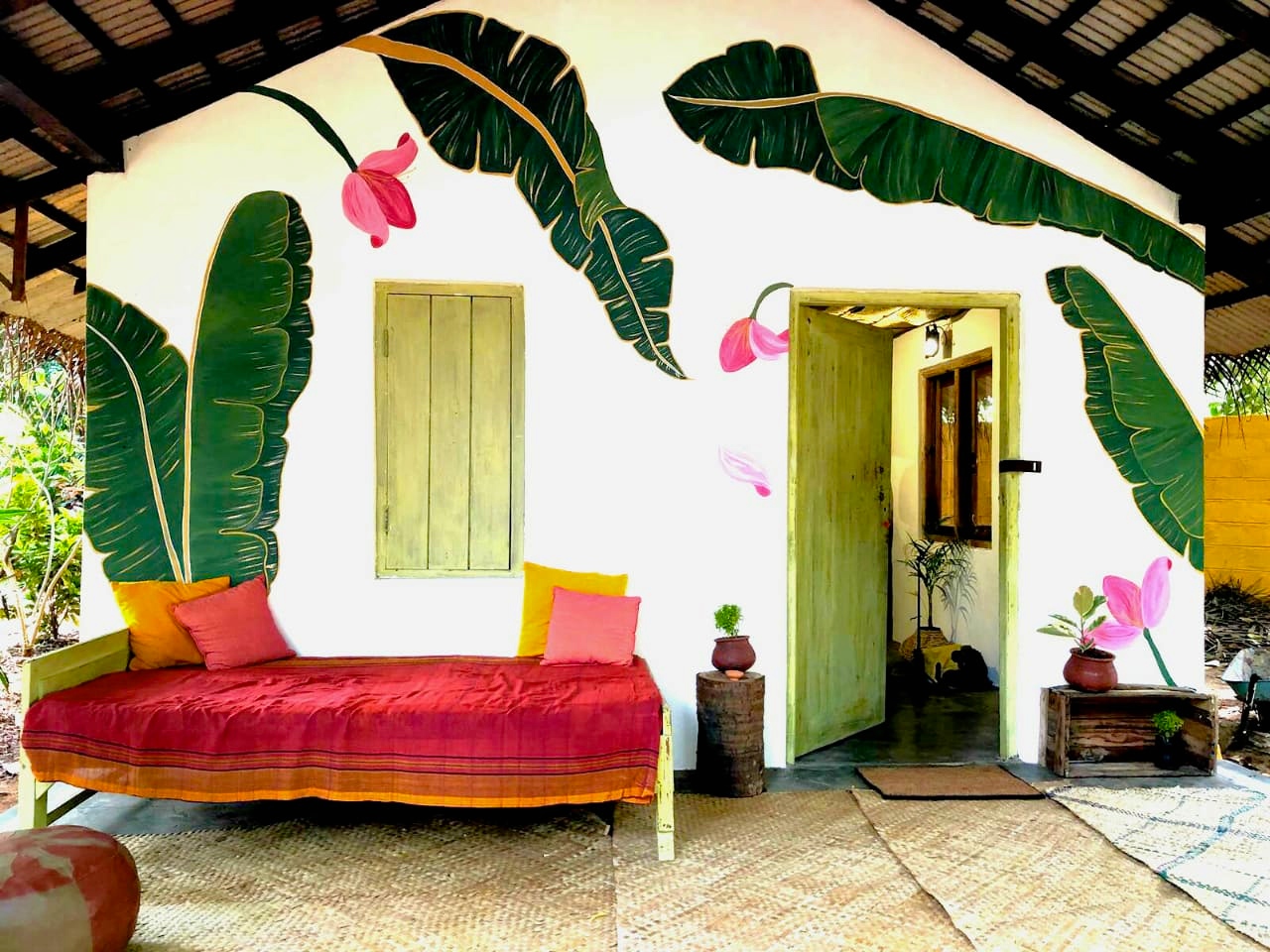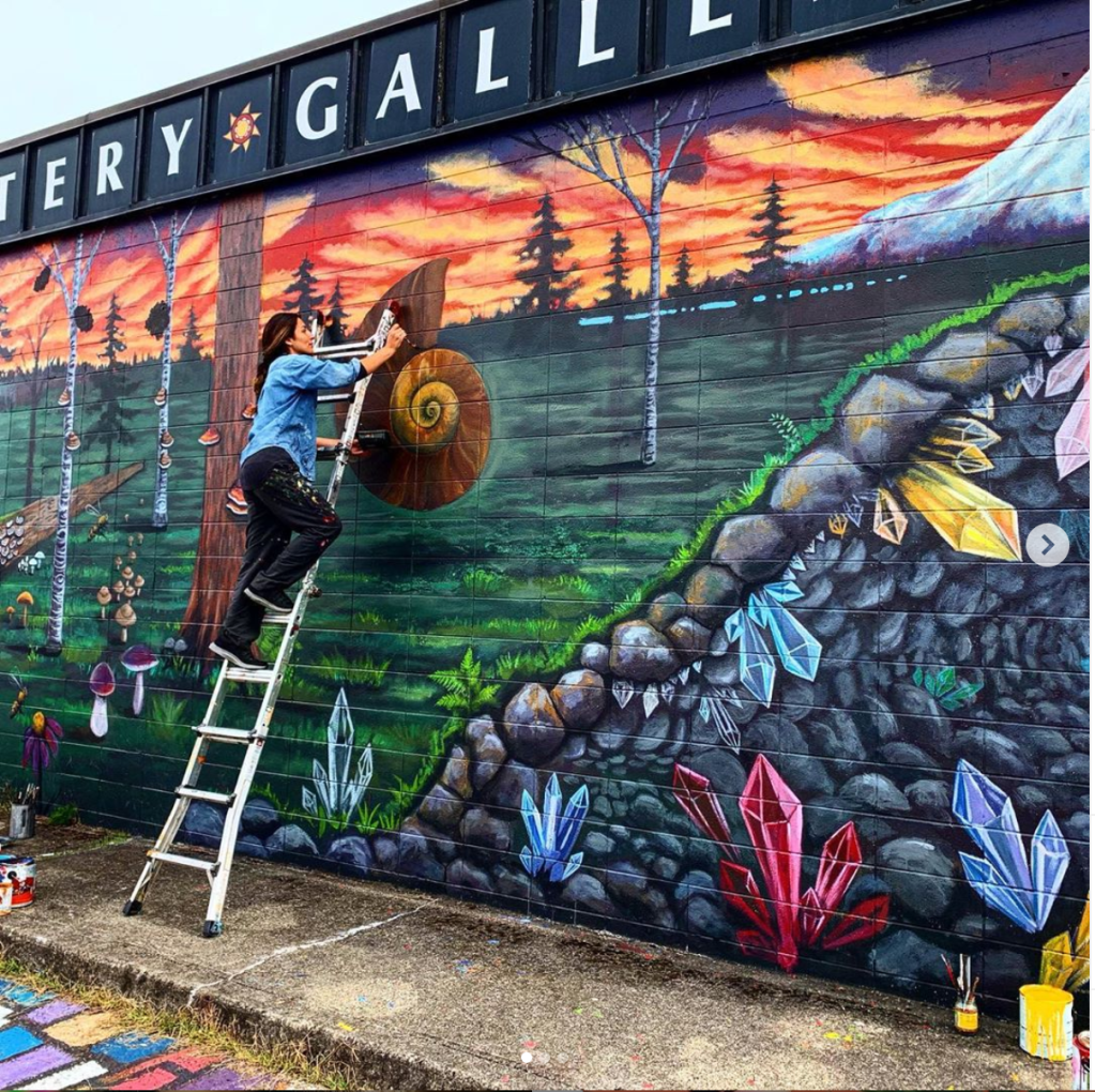 My dear friend, Jampel, writing “Tibet” underneath the thick density of the Upper Dharamsala forest mural.